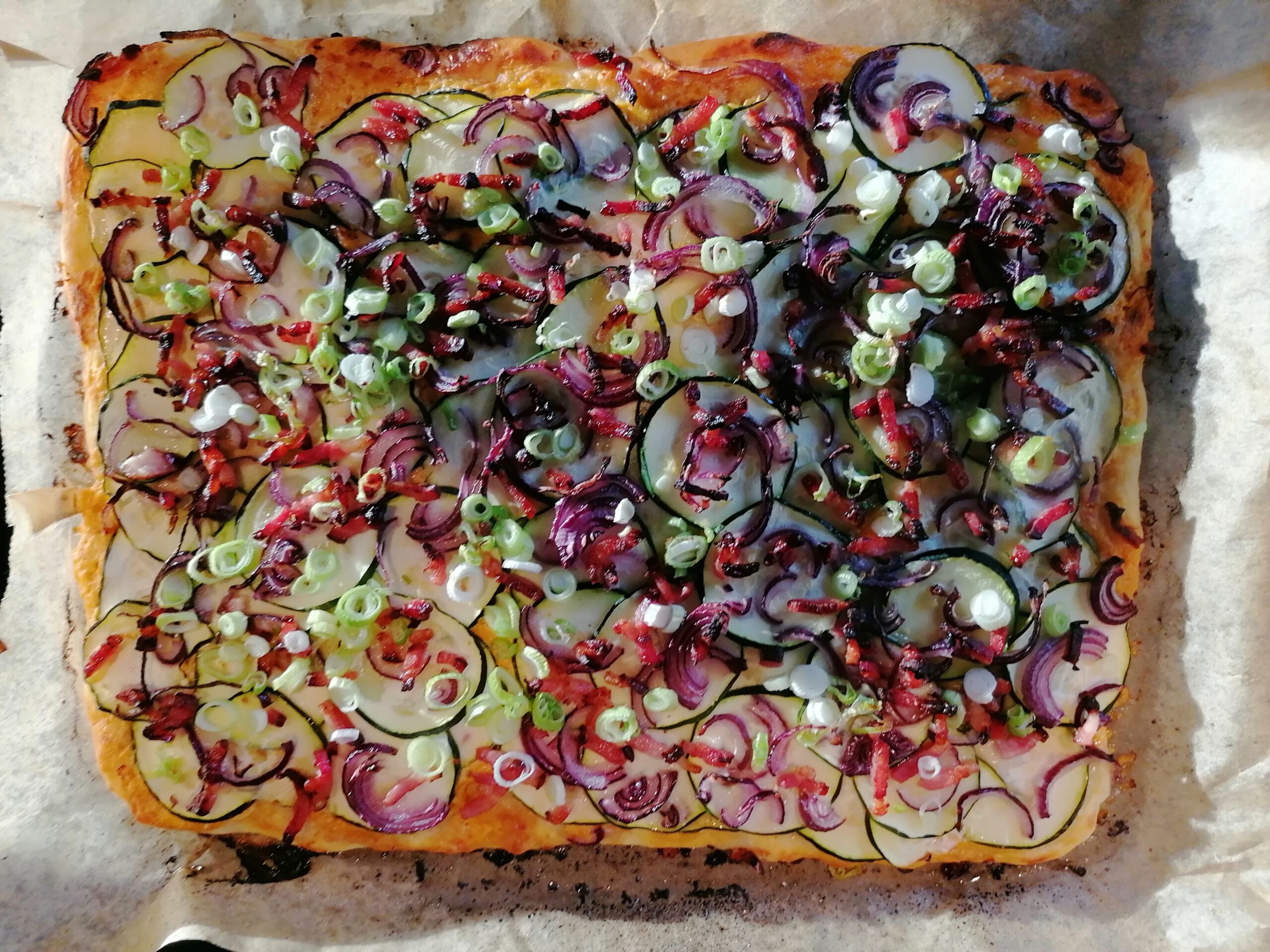 Eenvoudiger dan deze plaattaart kan bijna niet: kant en klaar deeg, alles er rauw op en 15 minuutjes in de oven.